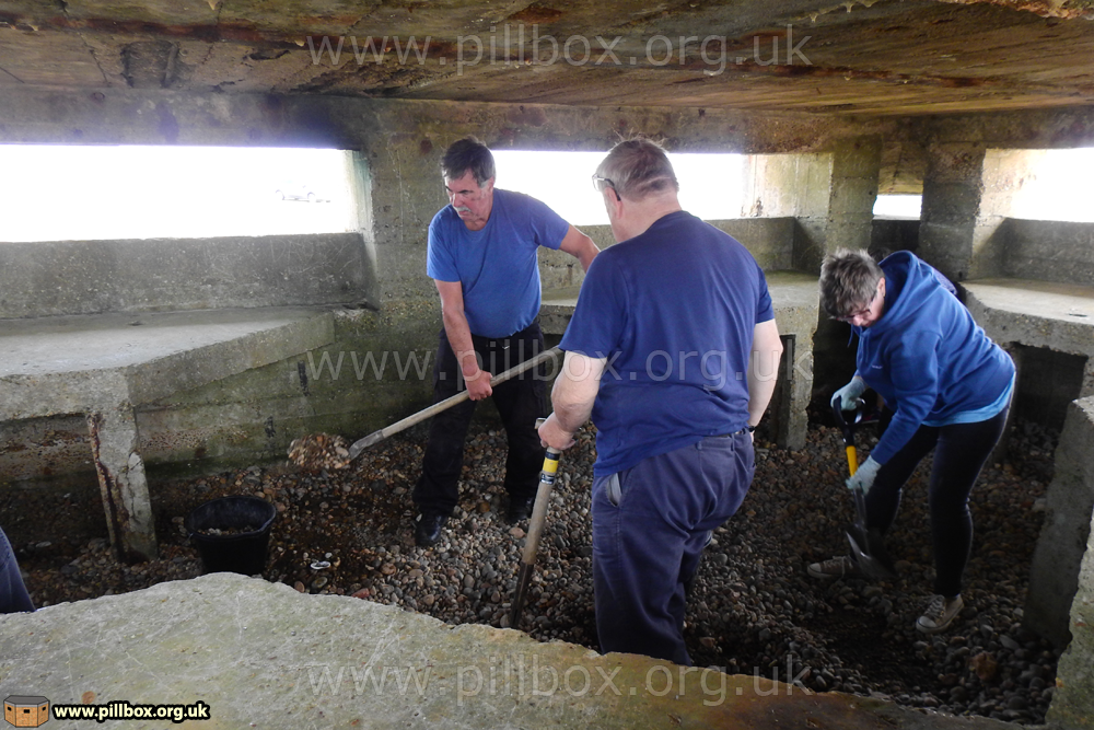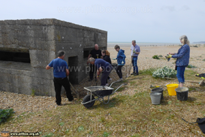 Thanks goes to our team of volunteers who turned out to shovel and barrow several tons of material from inside the pillbox onto the beach outside. The work was hard and hot and by 3pm our wonderful team had completely cleared the floor - perhaps the cleanest the pillbox has been since August 1940!