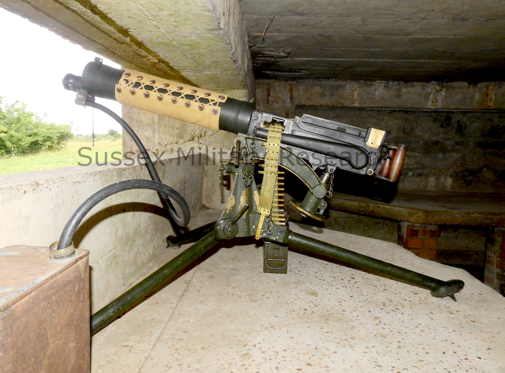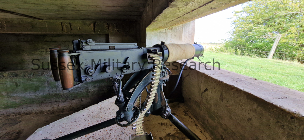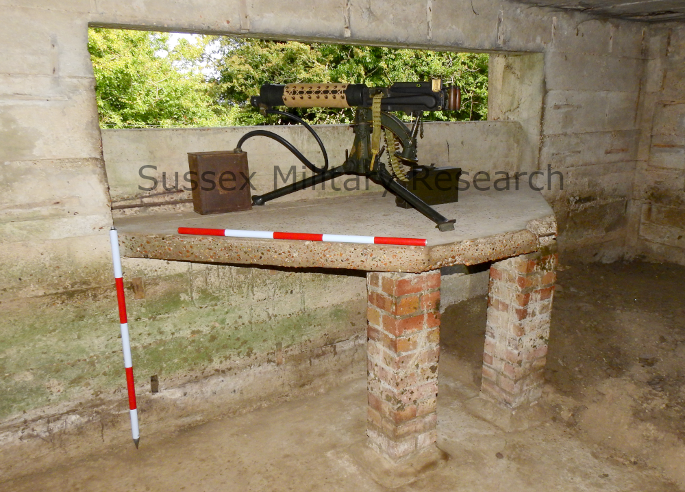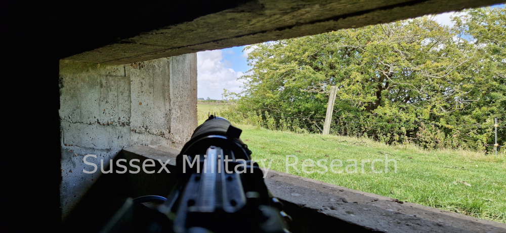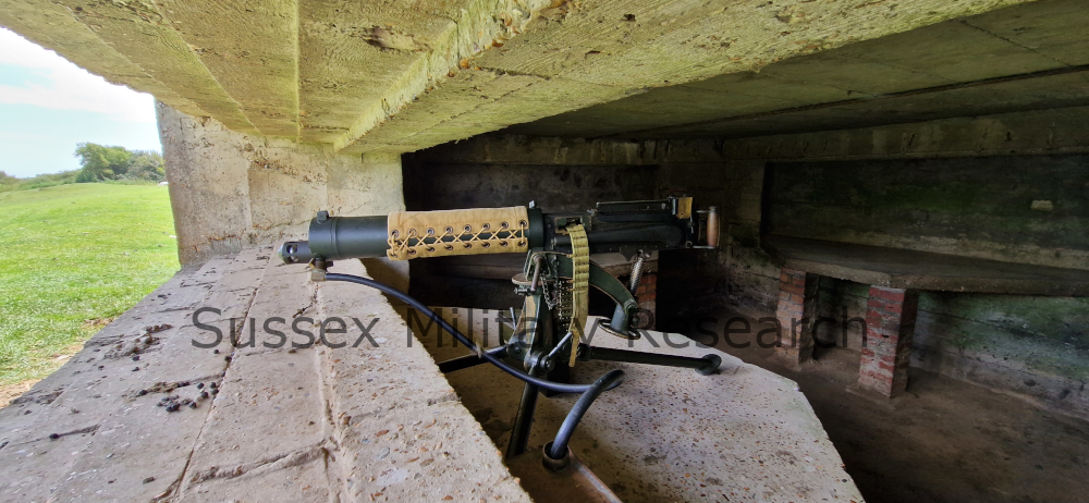 A Vickers gun was set up in the open embrasure in order to get an idea of the arc of fire. We determined that the ground to the front was deemed the most important task for the gun, and this is confirmed by wartime documents.