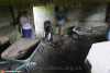 The soil. We hadn't bargained for how compacted 80 years' supply of cow pat and sheep dung on the floor had become. Reinforcements arrived in the shape of picks and mattocks and progress began to be made through the rock-hard layers.