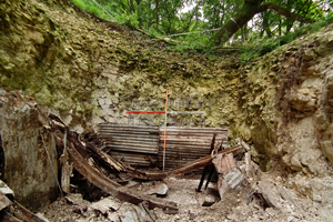 A 100% excavation to a depth of 3m below ground level was conducted over a period of five months, resulting in enough data being collated from the remains to construct a 3D computer interpretation. Although the main structure had collapsed, the escape tunnel (formed of concrete pipes) remained intact.