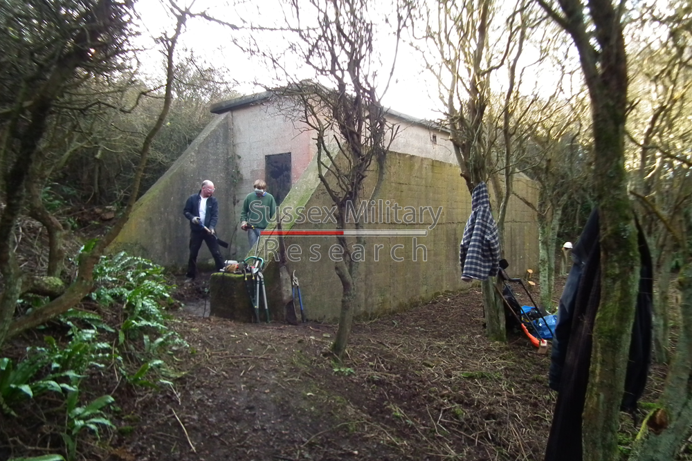 Heavy tree and vine growth was removed from on and around the BPR and its blast wall. The interior was cleared of rubbish and swept prior to recording. A small excavation revealed the presence of armoured cables that were part of the communications system.