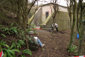 Description: Removal of vegetation from and recording of, the Battery Plotting Room (BPR) for the coast artillery battery on West Hill, Newhaven.