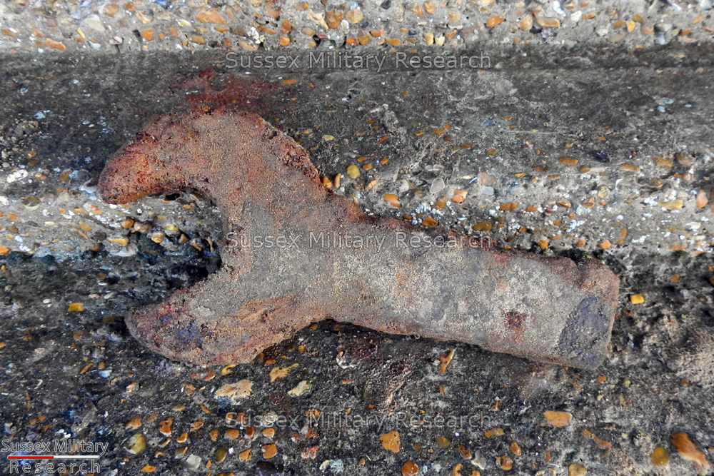 The team spent the day removing several tons of sand and shingle that had built up about 15cm deep over the years. The removed spoil was seived thoroughly and some artefacts were recovered, including part of a spanner and what may be the handle from an ammunition box.
