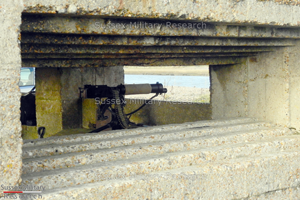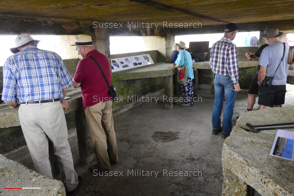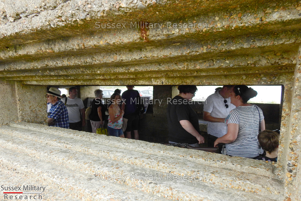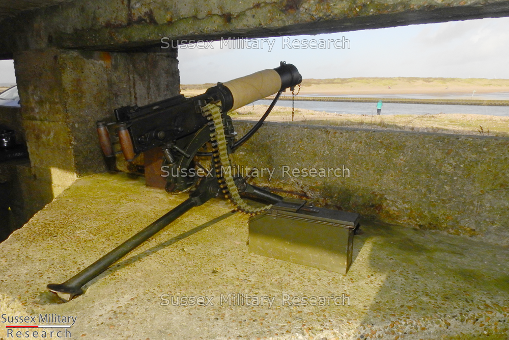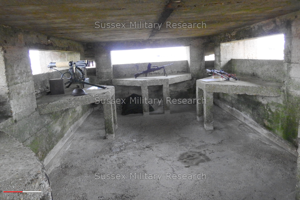 The pillbox was built in 1940 to house two Vickers machine guns and example of one was set up in order to appreciate the design and location of the pillbox.