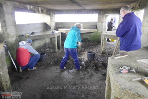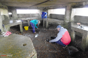 Description: A team of volunteers from Rye Harbour Nature Reserve and Sussex Military History Society spent a rainy November day cleaning out a pillbox at the mouth of the River Rother.