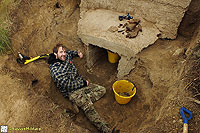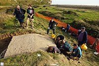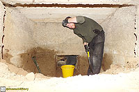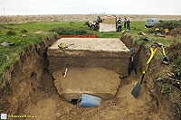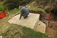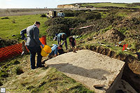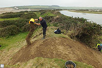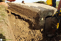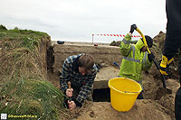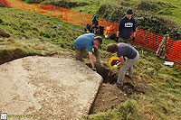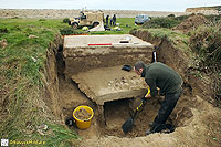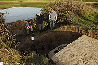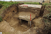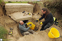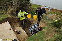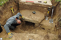 Description: Excavation and recording of a pillbox situated in a flood defence bank that had been damaged by previous (illegal) attempts to excavate it. The damage was restored by our reinstatement.
