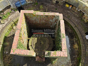 The roofspace retained evidence of coastguard occupation in the form of a square brick-built cubicle around the original central pillar. An attempt had been made to level up the chamfered parapet stones with brick and concrete, seemingly to create a foundation for a larger structure. Nothing concerning this addition was found in the archive documents.