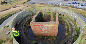 Description: A partial survey focussing on internal features, the roof area and moat of Martello Tower No.28 at Rye Harbour. Built 1805-08 to meet the Napoleonic invasion threat, the tower was also occupied by the coastguard. During the Second World War it became an observation post and has an Ordnance Survey tertiary trig point installed on the roof.
