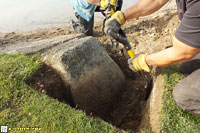 The excavation proved to be quite simple; after a couple of hours the top and one side of the block had been exposed. Being right beside a footpath, several hundred people passed by, many stopping to try and work out what it was that we were doing!