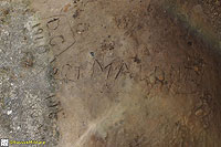 As the top surface was revealed, graffiti began to appear; brushing and washing helped remove the mud and so the landscape began talking to us.